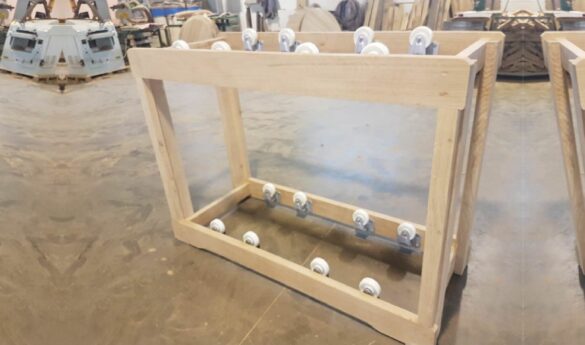 Stands are made for barrels from 5 to 10,000 liters, vinificators, and barrique barrels. They are made by gluing wooden pieces to certain lengths and widths.